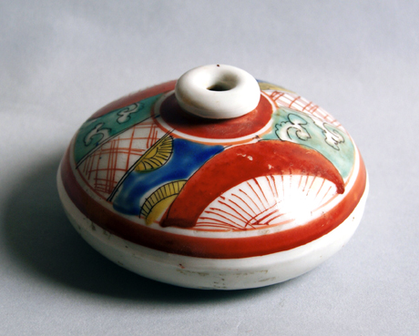 江戸時代後期〜明治時代前期(約150年前)。油壺は読んで字の如く、油、本品は髪につける油をいれておく小壺。様々な地域の様々な焼き物の油壺がある。本品は伊万里焼き。